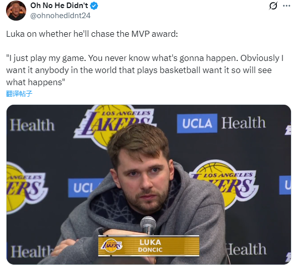 赛后谈到自己本赛季是否会去追逐MVP,东契奇表示:“我只是打好我的比赛。你永远不知道会发生什么。显然,我渴望得到它,世界上任何打篮球的人都想要得到它,所以我们拭目以待吧。”